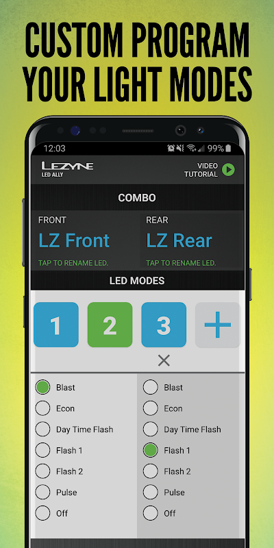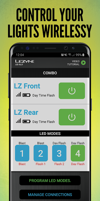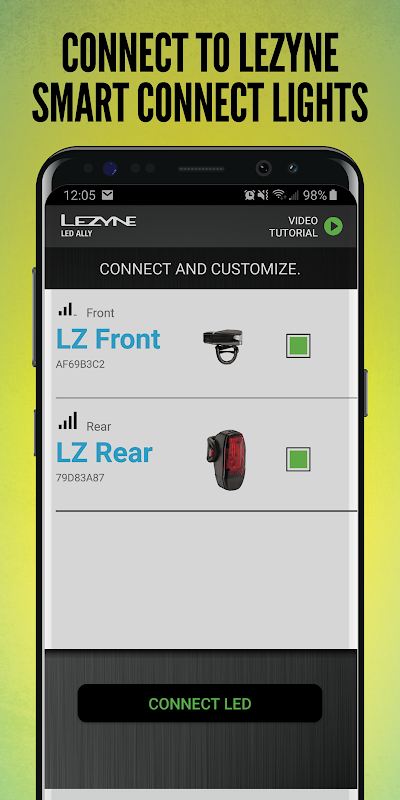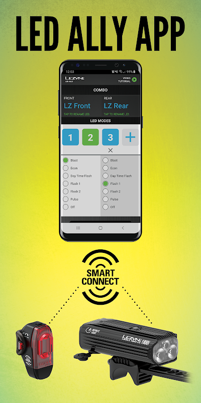 Smart Connect is an innovative technology we developed in-house to control, simplify and customize compatible Lezyne LED lights. Using this free phone app, Smart Connect lights can be controlled and programmed either as a combo or individually. The simple interface of the app is used to control your lights on the fly, or to custom program the modes. If the front and rear are linked, the front light will now wirelessly control the rear light as you toggle through the modes, even if you are not connected with the app.