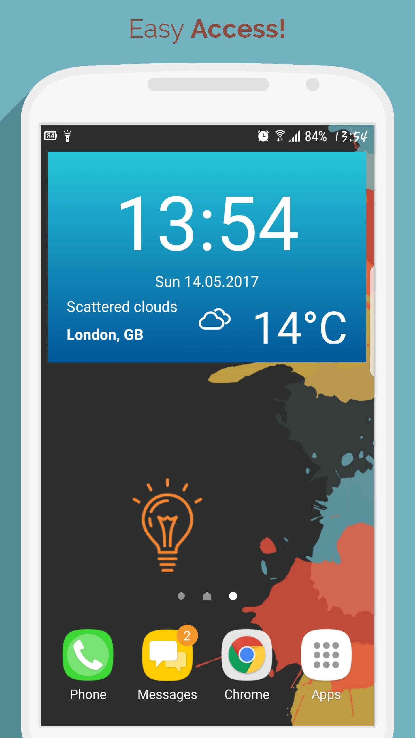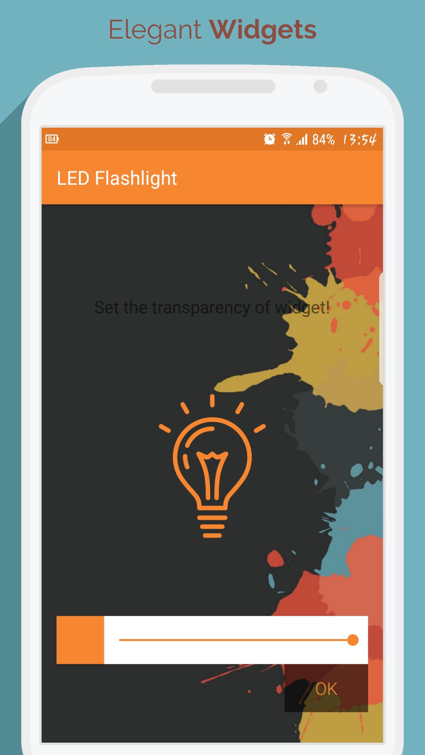 LED Flashlight comes with elegant widgets, it provides great customization in widgets area. you can adjust the transparency and size of widgets. When using widgets you can turn on the flashlight on single tap on the widget. Through widgets, turning on flashlight is effortless.