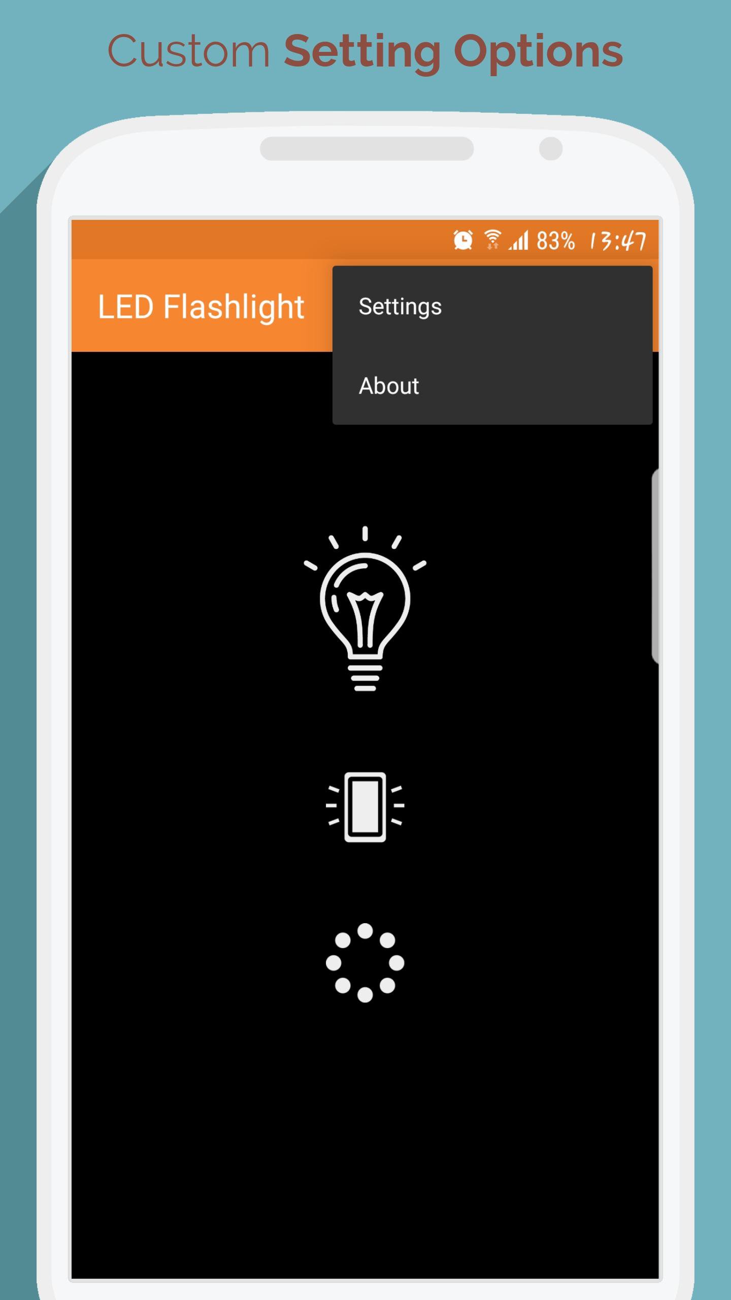 LED Flashlight - Screen Light also comes with strobe option to control your flash. You can adjust the delay of strobe by using the seek bar to set SOS signals and much more. The setting ranges from 2 seconds to 30 milliseconds.