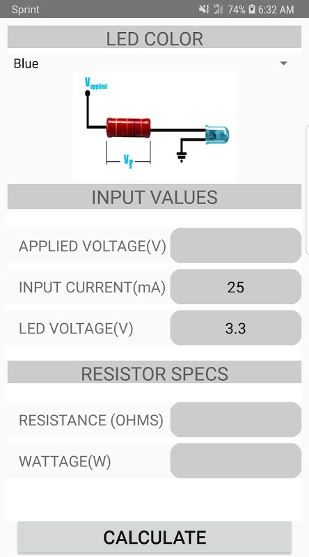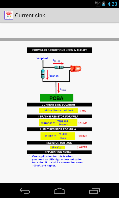 An app to calculate the value of the voltage drop resistor and power rating in a series connected LED. It also has the option to calculate the value of a branch resistor in the case of a circuit board that requires large sink currents. You can use this calculator to get the value of the branch resistor. Why would you need an LED in that case. You want a visual indication ON/OFF or HI/LO.