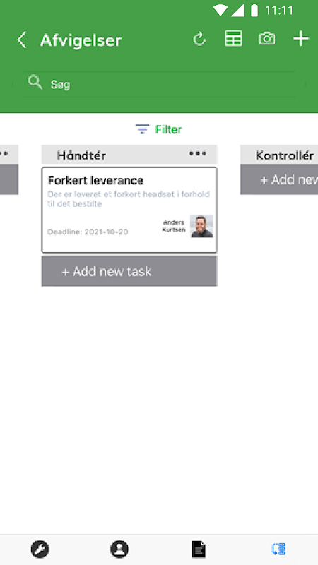 Get an overview of registered deviations or improvement opportunities - or create new incidents, suggestions, or tasks directly from the app. With Ledoc Mobile, it only takes a moment to register a suggestion of improvement or incident on the go. You’ll get effective handling of discrepancies, complaints, potential problems, observations, improvements, incidents and injunctions so that your business can reach its full potential.