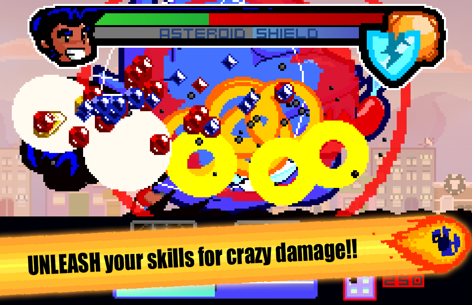 ๏ PUMMEL the barrage of wacky space boulders with rapid taps and strategic attacks