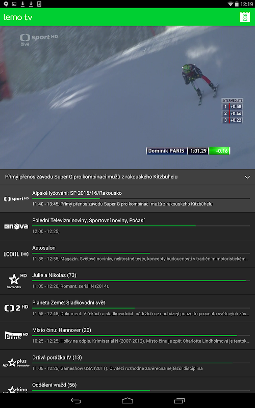 - živé televizní vysílání s možností přehrání od začátku