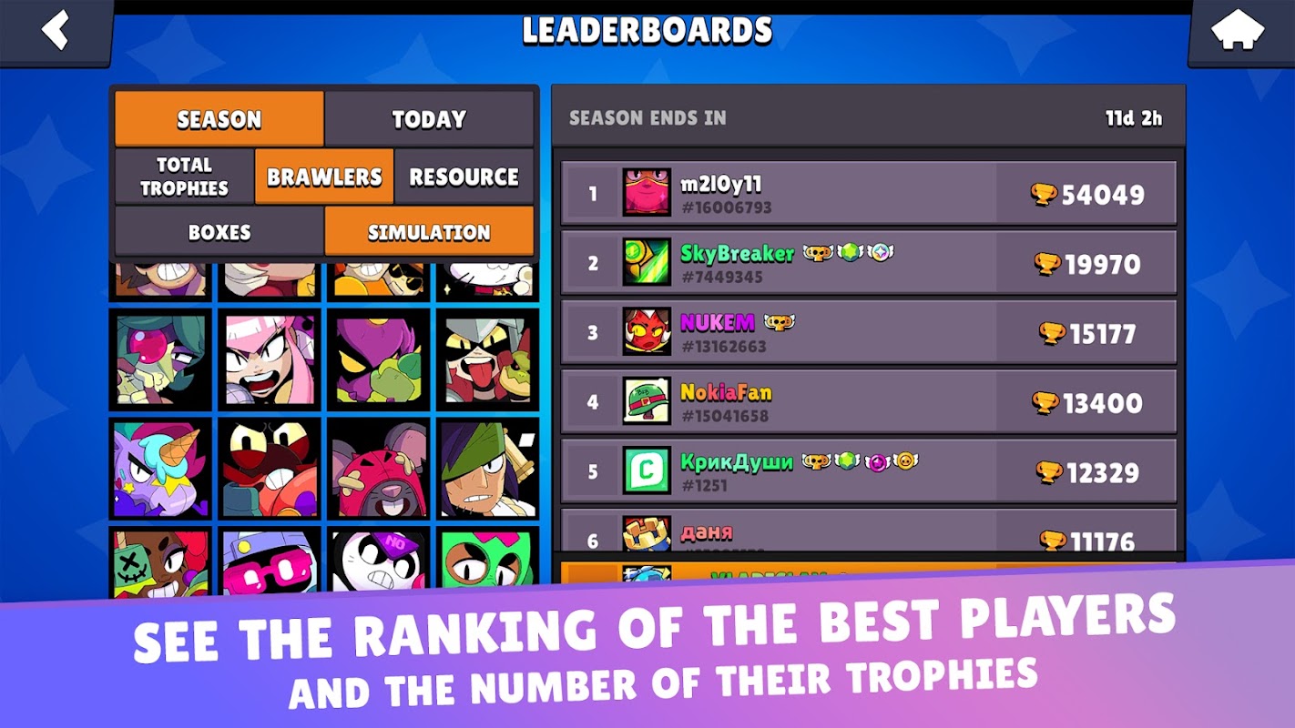 Collect the entire roster of brawlers and skins and upgrade your profile!