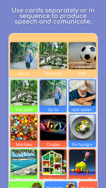 • Create cards based on each user's preferences, stimuli & familiar imagery. Use them separately or in sequence for more complex meaning.