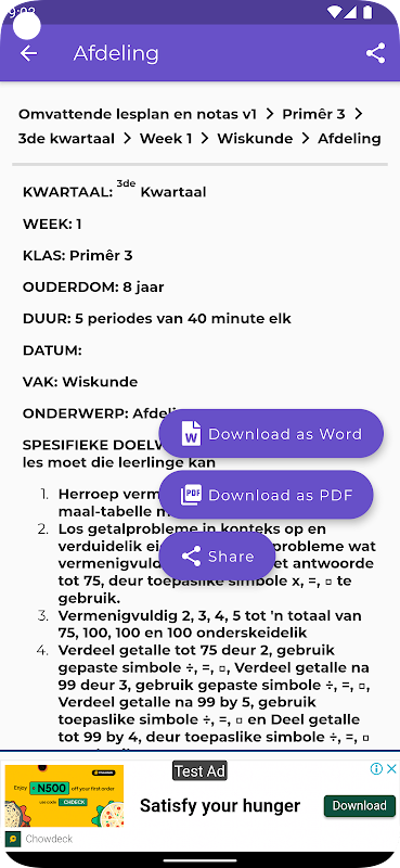 Read, Prepare and Download Lesson Notes and Plans in Afrikaans