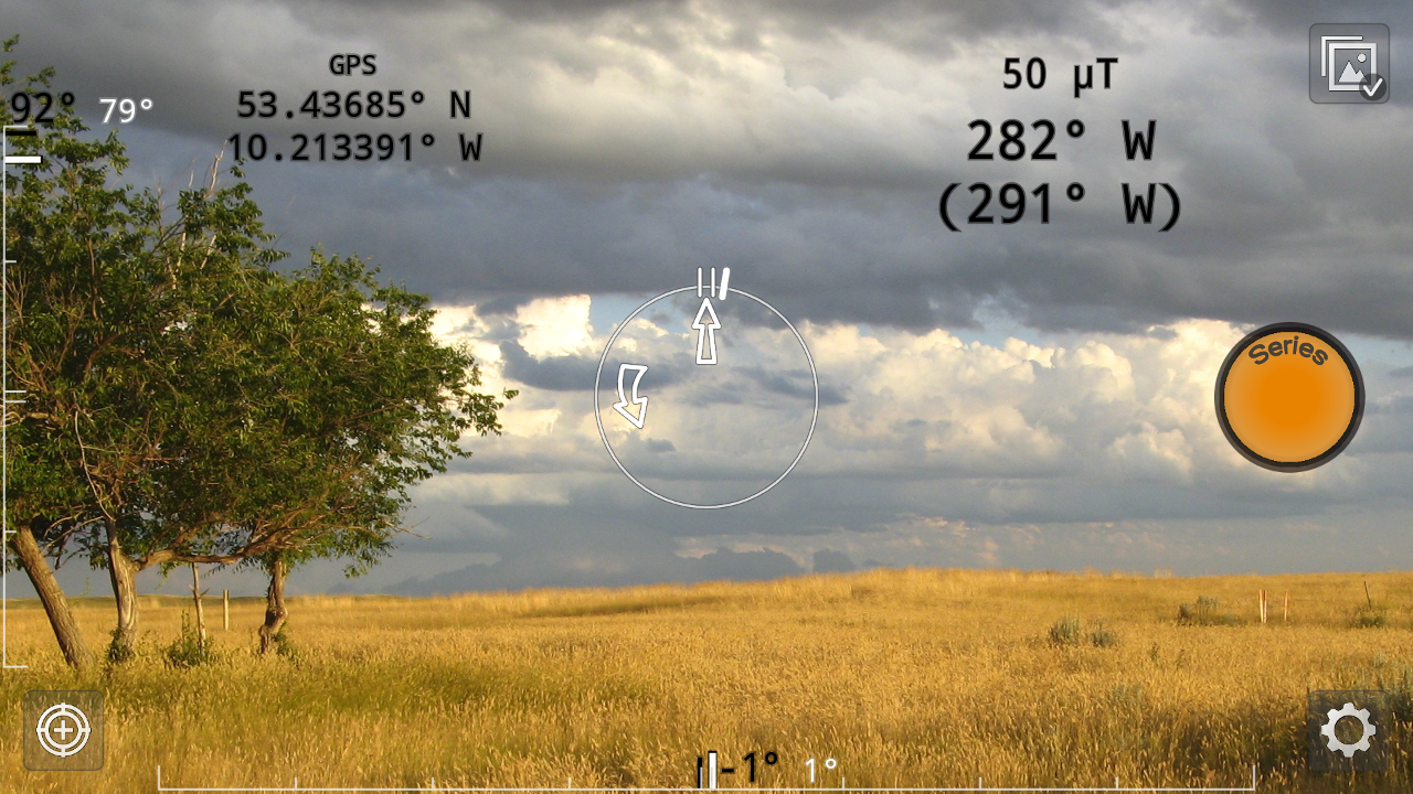 Improve your photo series by orientating your device with the compass and your location.