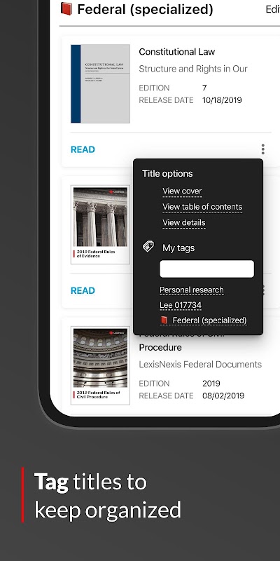 • Use your organization’s complete eBook collection on your phone or tablet – allowing for convenient access to important legal resources anywhere work happens.