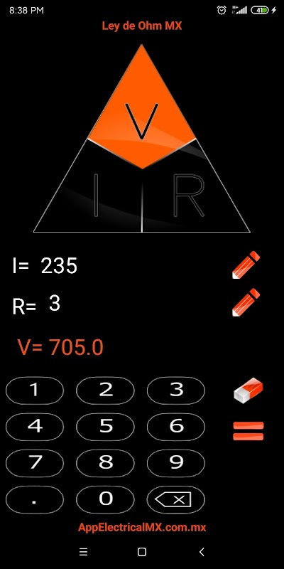 Calculadora con las formulas de la Ley de ohm útil para los técnicos en electrónica muy fácil de utilizar las funciones de la ley de ohm son las siguientes: