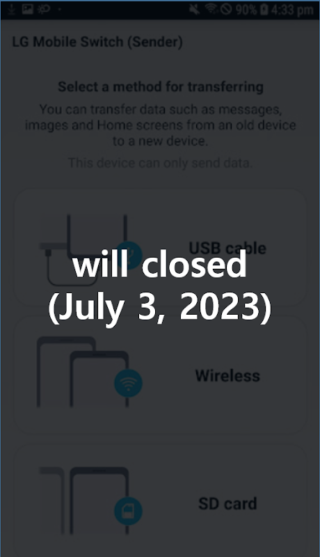 - New LG device : recent LG device (From LG G3 with Wi-Fi transfer, From N OS with wired transfer)