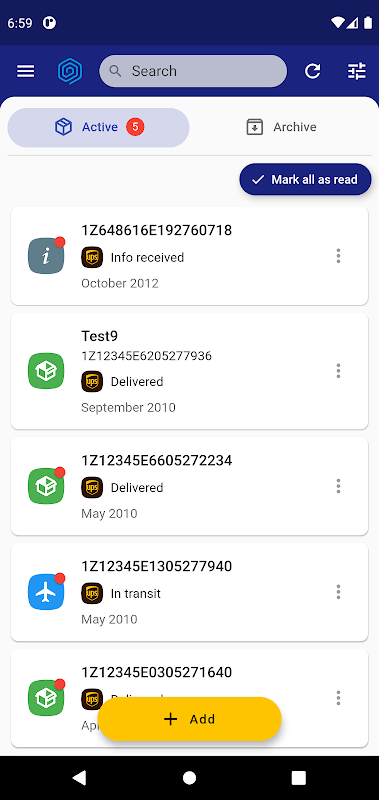 Track postal items directly on your device using accounts of postal services. The app respects your privacy and freedom: you don't use third-party online services.