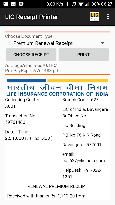 LIC Receipt Printer APK Information