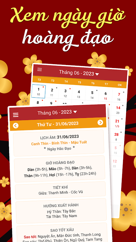 Perpetual Calendar 2024 Application: Lunisolar calendar software, viewing good and bad days, viewing good and bad hours, viewing the number 1 prayer in VIETNAM and completely FREE