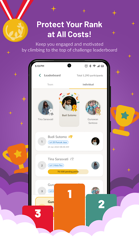 Stay connected with your teammates by communicating through our enhanced chat features - Team Talk. Motivate them to stay active and win the challenge!