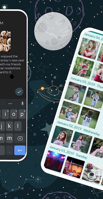 Write your life journey and keep those memories forever. You can also write journals, notes, to do lists and your daily plans in this diary app. It is also a note keeper, you can keep your notes in this diary app. It is a pocket diary where you can express yourself. Write your secrets and feeling in this life diary. Keep your life memorable life moments and milestones in it.