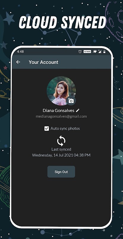 We often write diaries in night time, that is why we provide free night theme in this diary app. By this you can completely relax and write your diary at night time.