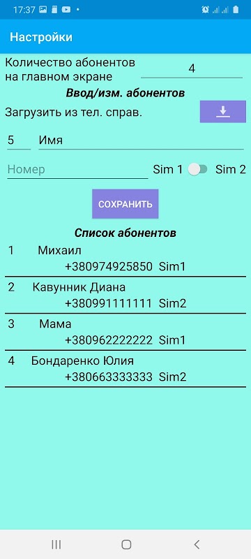 5) Ability to determine the number of subscribers on the main screen yourself. The sizes of the call buttons change dynamically.