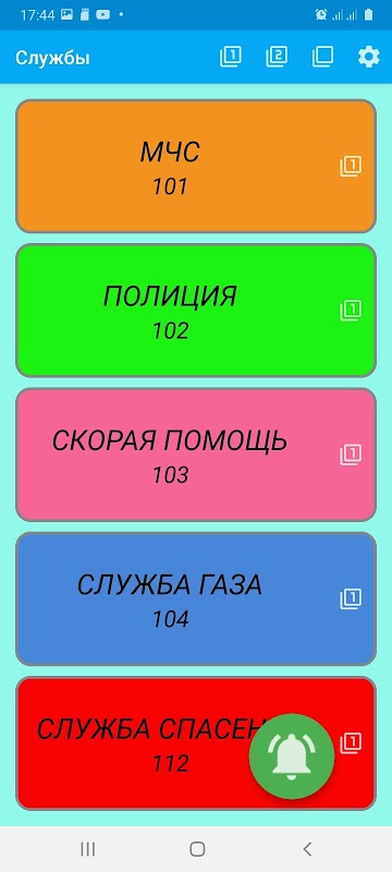 6) The presence of a separate screen for calling various services, including emergency services (ambulance, police, etc.).