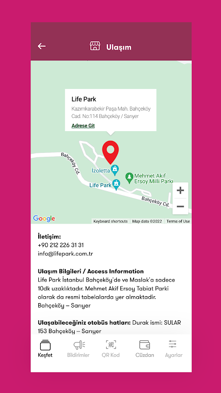 Lifepark, the new music-filled living center of the city, is located at the foot of the Bahçeköy walls, 7 km from Maslak and 10 minutes from Hacıosman Metro station. Lifepark has the distinction of being the largest open concert venue in the city, located in a magnificent forest. In addition, with its walking tracks, activity areas, Qubbe Garden, Isoltta Wine & Steak House and pleasant cafes, it serves all day long except concert days.
