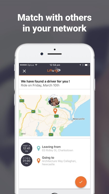 2) Liftango automatically matches you with people travelling the same route in your trusted network