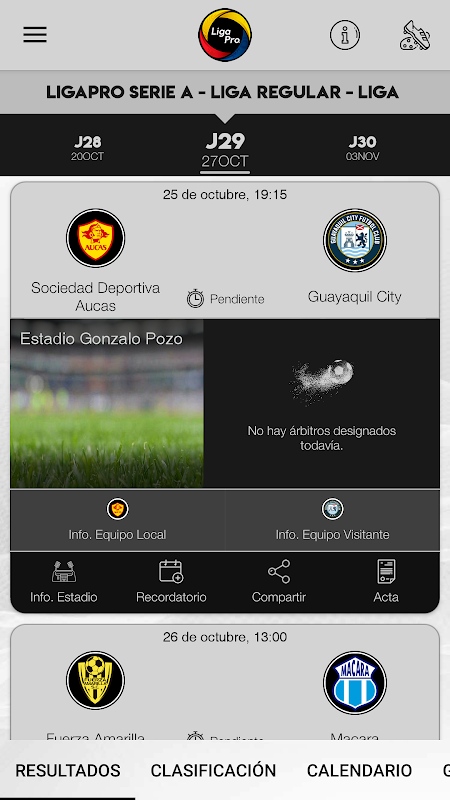 Aplicación para el seguimiento de los partidos de la Seria A de la liga de fútbol de ecuador.
