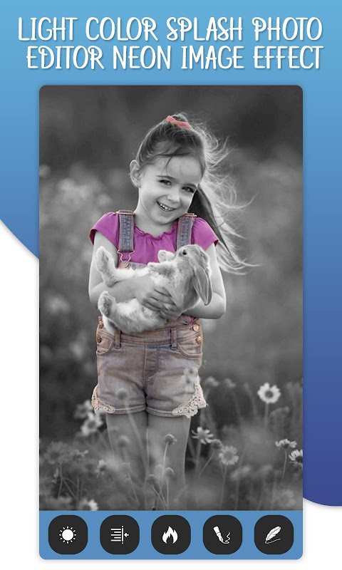 Light Color Splash photo Editor neon Image effect provide tens splash magazine effects. Are you in look for the simplest picture color changer? If therefore, this super fashionable application for android is a should have! light Color Splash photo Editor neon Image effect makes picture writing simple. Hold your candee camera, take a snap and alter the background color of your picture in a very sec! Discover a lot of color choices, from dark black to element yellow. Color splash effects is enclosed with this photograph editor, therefore be happy to do it out. Enhance the look of your image, create it black and white or add a pop of color to your hair or eyes. With this wonderful image writing program you'll expertise a lot of fun and excitement!