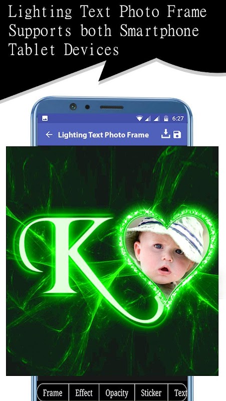 Lighting Text Photo Frames add your lovely photo to our lighting text frame app.