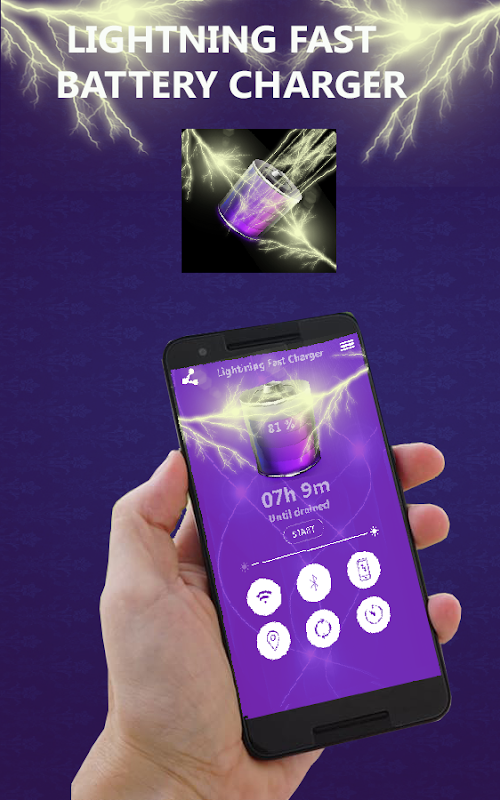 Charge smart phone battery with lightning fast charger. This is absolutely faster when you need concurrently enhancing battery life with LIGHTNING FAST CHARGER utterly free. Just connect charger to device it activates, closes high power draining services and applications like Bluetooth, GPS, Wi-Fi, Mobile data, High screen brightness, Screen timeout and Auto Sync etc.
