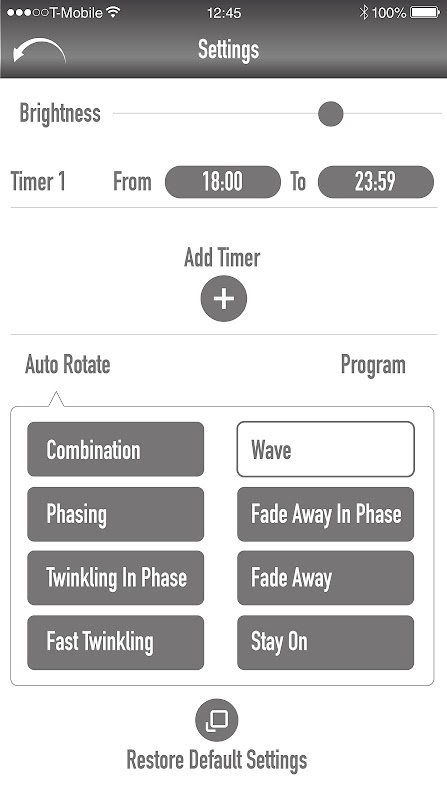 - - The App has 8 controller function (Stay on, Fast twinkling, Twinkling in phase, Fade away, Fade away in phase, Phasing, Wave and combination)