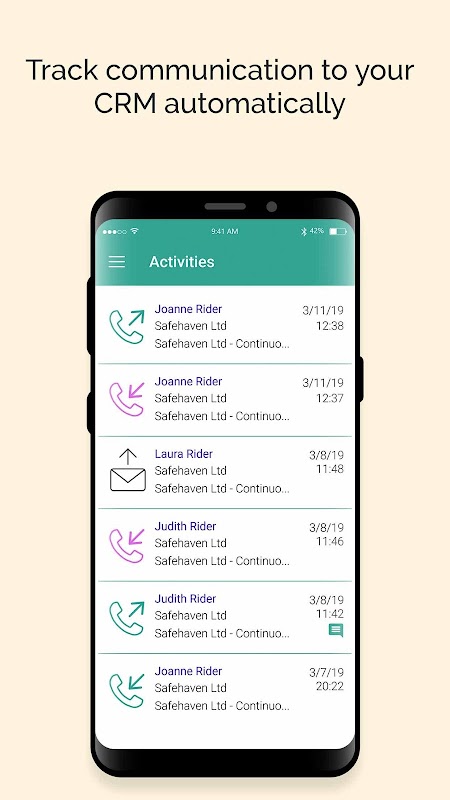 - Automatically identify business calls and choose to track them in your CRM