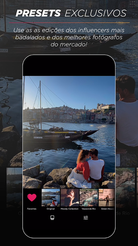 With a few mobile clicks, use professional presets by influencers and the best photographers on the market in your photos! Presets all created by professionals, like Flávia Pavanelli, Gabi Luthai, Lucas Pinhel among others, and suitable for mobile use!