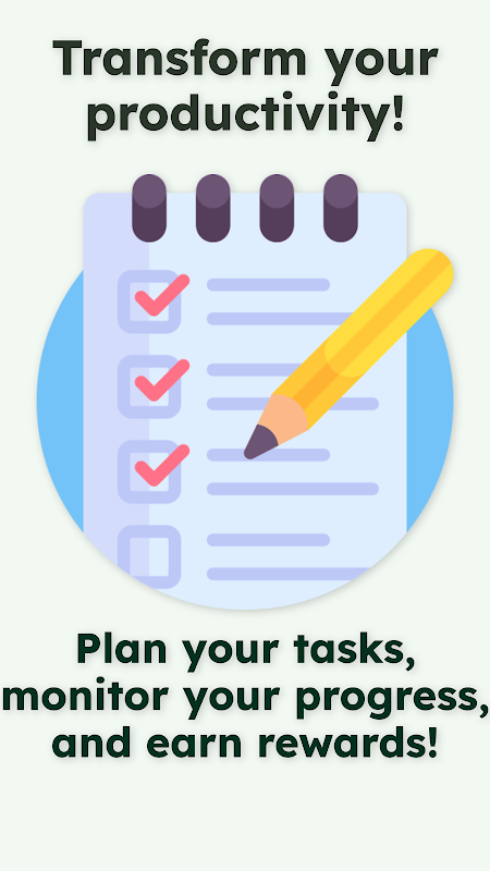 Organize your tasks and achieve your goals with motivation! Our app combines a user-friendly To-Do list, an achievement system, statistics, and gamification. Earn rewards for completing tasks, track your progress, maintain streaks, and unlock new features. Customize your appearance, choose themes, unlock avatars and effects. Planning has never been this exciting!