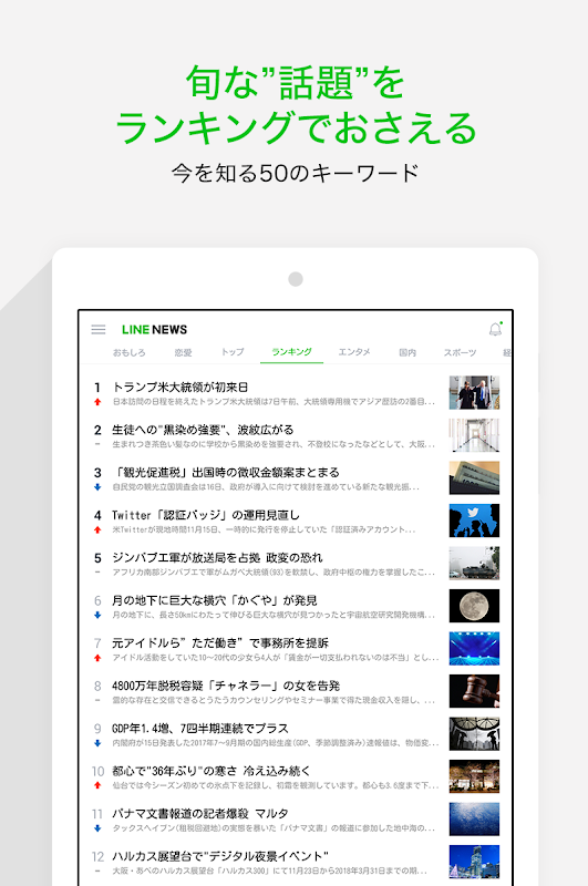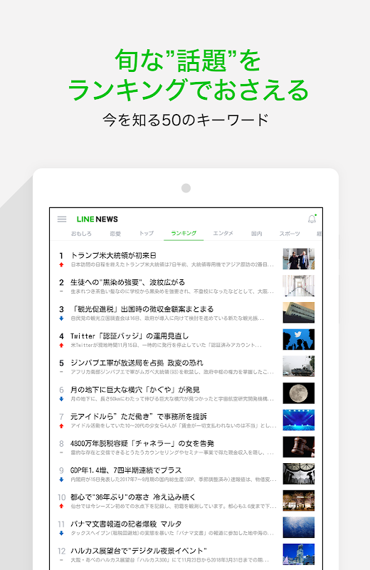 "ランキング"タブ登場!旬な話題をランキングでおさえることができます。