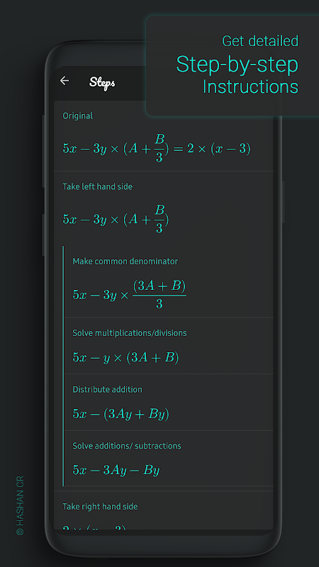 A lightweight app for solve / simplify equations, simultaneous equations & quadratic equations quickly. Use any number of variables & constants.