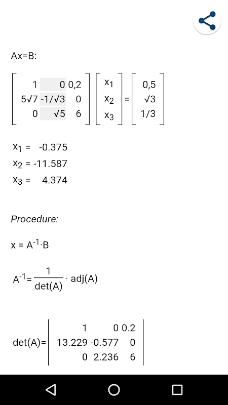 Through this application you can perform operations with matrices, solve systems of linear equations, Ax = B, using the methods of Cramer, inverse by Adj-Det, Gauss and Gauss-Jordan.