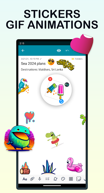Rich Editor - Enhance your notes with a wide array of editing options, including bold, italic, strike-through, background color, and various font sizes, along with list creation capabilities.