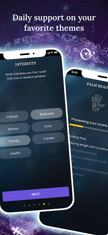 - Advanced palmistry – analysis of all main and rare lines with detailed reports, tips, and suggestions depending on the scan results.
