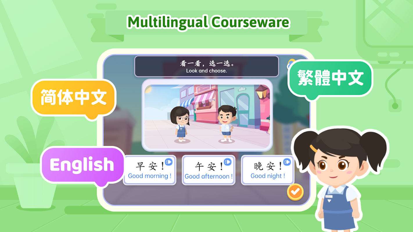 Our bilingual courseware is appropriate for multilingual learning environments and meets the needs of second language learners. It reduces learning pressure and increases learning efficacy.