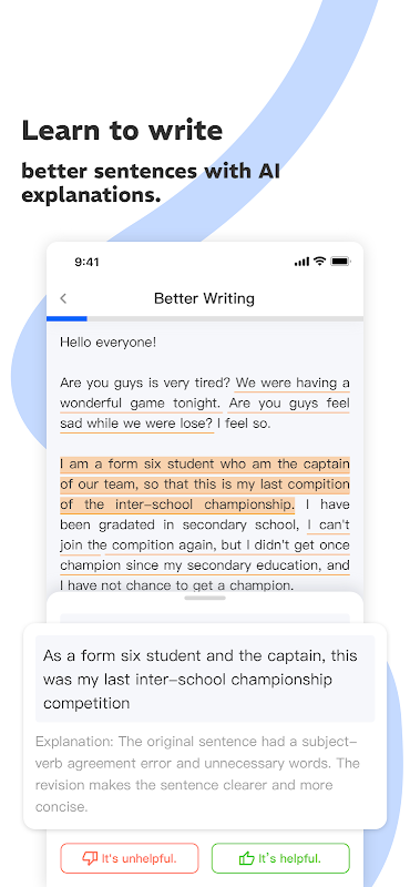 By using AI-Powered LingoTask, teachers can grade essays, dictation and speaking tasks quickly and accurately. This is especially beneficial for large classes with many students submitting their homeworks at once. With AI's instant feedback, student could study efficently any time, anywhere and as long as they like without carrying piles of exercise books!