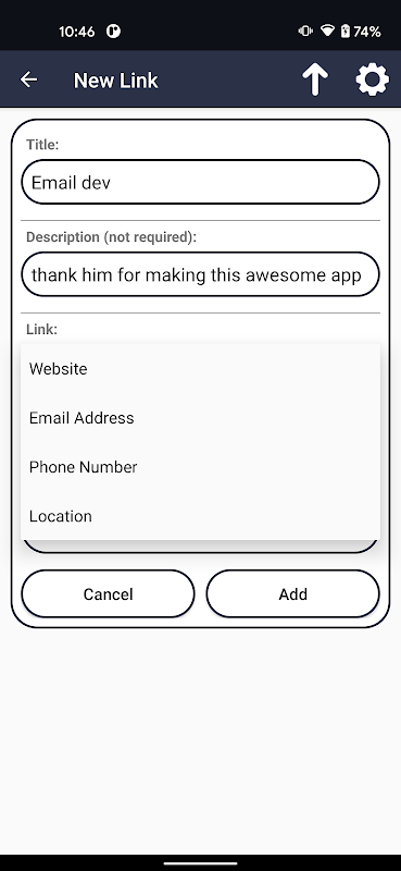 Meet LinkBoard, a simple and intuitive app that lets you save links to websites, email addresses, locations, and phone numbers for later! Each link is displayed in the form of a card that can be assigned a title, description, and category. Simply tap a card to visit a link, hold to share it, and swipe to delete it!