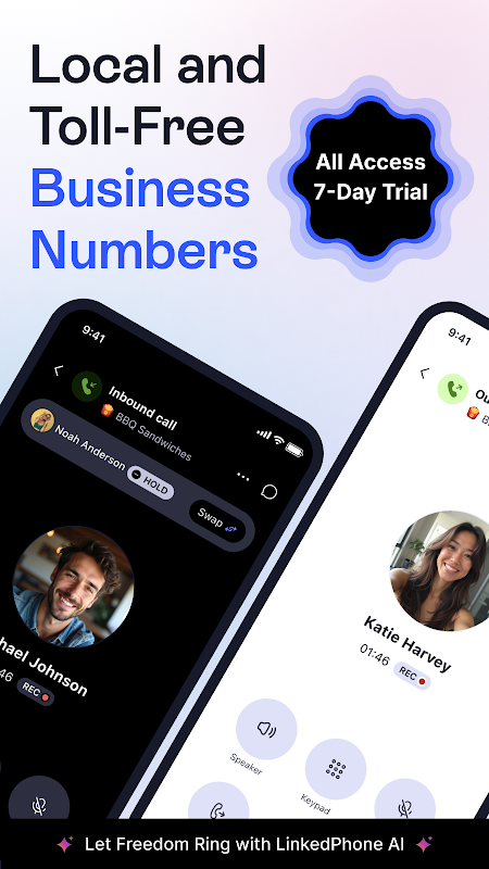 The LinkedPhone mobile app adds a dedicated business line to your mobile device. Use your second phone number for work, professional services, or your small business. Choose from our vast inventory of local & toll-free business phone numbers or keep the business number you already have.
