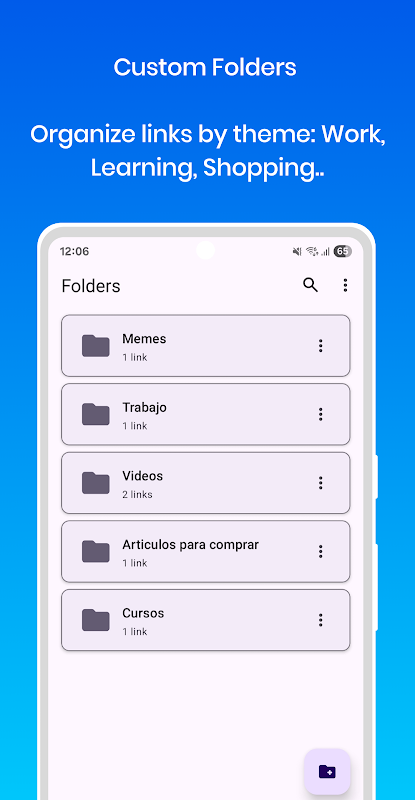 Customizable Folders: Organize links into thematic folders (e.g., "Work," "Travel," "Recipes").