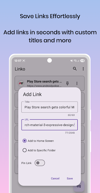 Save Links Effortlessly: Add links in seconds with custom titles and more