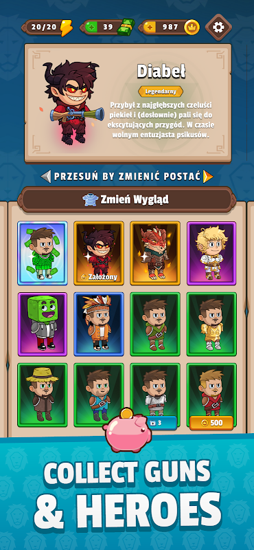 Develop your hero by collecting over 100 unique artifacts that will give you an edge in battle. Collect character and weapon skins to customize your look as you wish!