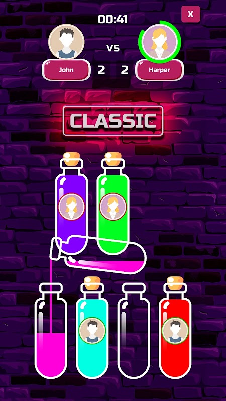 Sort the colored liquid in the bottles as much as you can and defeat the others