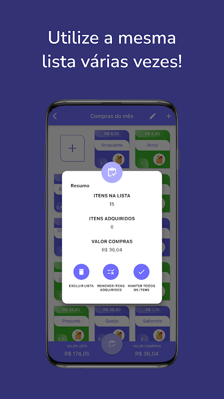 Reutilize suas listas após sua compra. Use sua lista de mercado pronta!