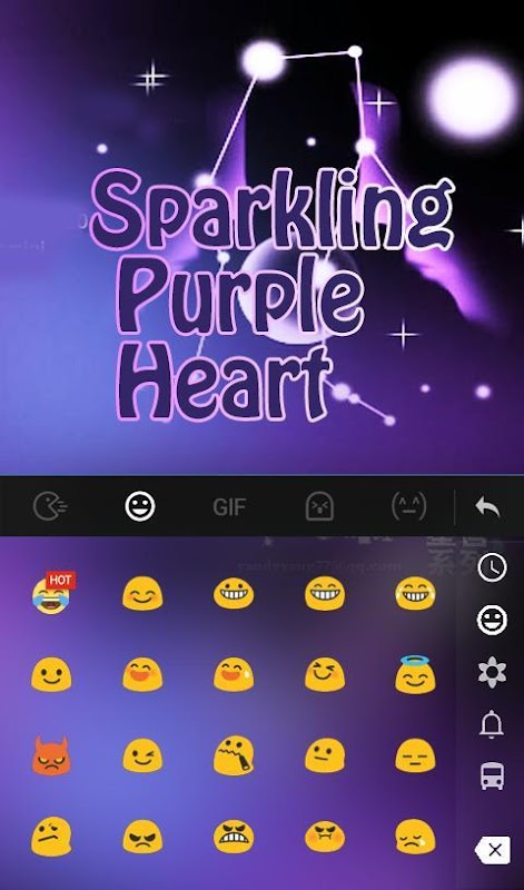 New Free Sparkling Purple Heart theme for TouchPal Emoji Keyboard. Typing fun!