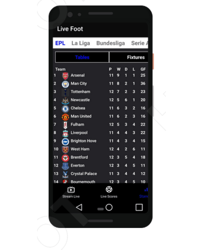 Live Foot is very simple and easy to use and it don't collect or keep users sensitive data (no login/signup). In conclusion, it is a simple live football streaming app with Livescores, Leagues Table and Leagues fixture.