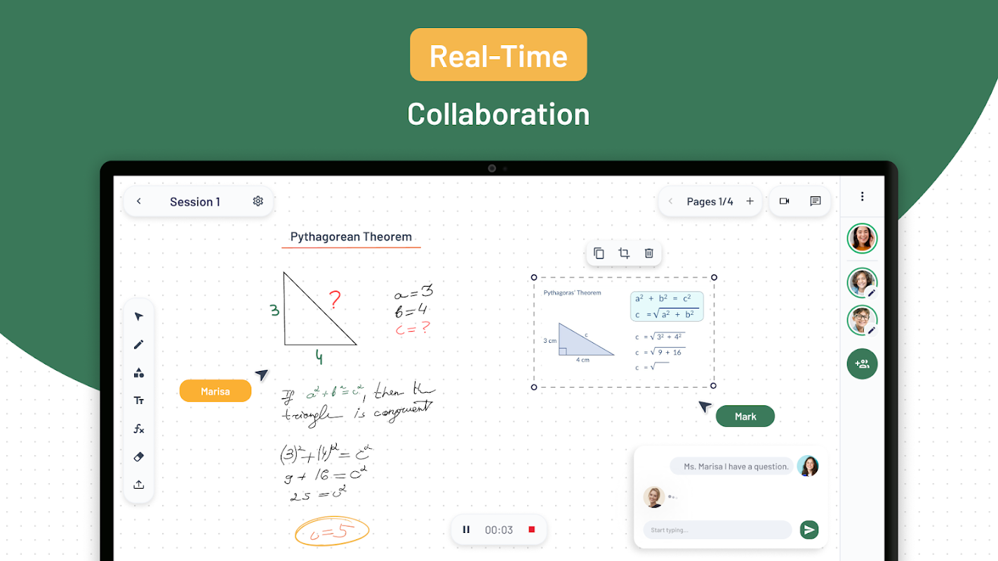• Make all students feel present. Let absent students participate as if they are in the classroom. Make classroom teaching easy and interactive via shared whiteboards.