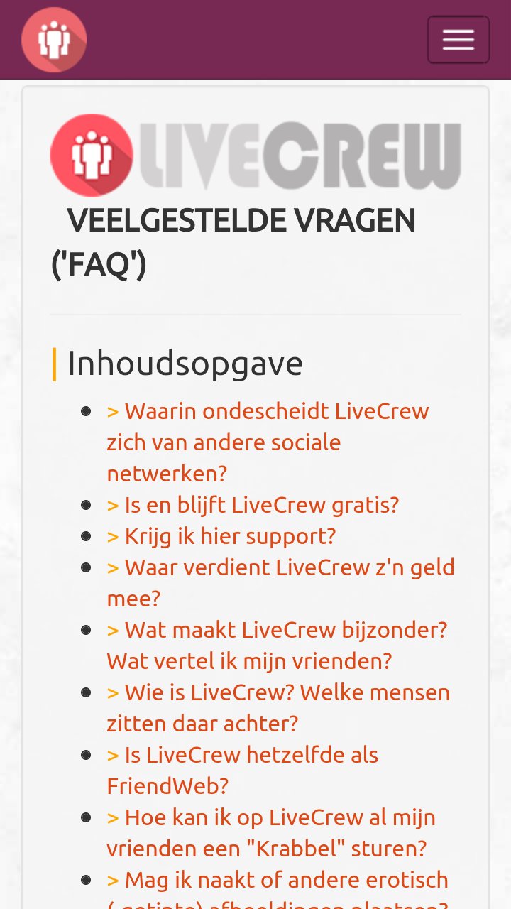 LiveCrew Mobiel v.1.1 is de web-app voor LiveCrew.nl, geoptimaliseerd voor gebruik met ondermeer Samsung toestellen.
